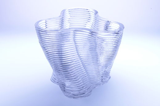 The machine prints soda lime glass, a family of glasses used in everything from water glasses to windows. But glasses like Pyrex could in principle be printed this way too, albeit at much higher temperatures. Houk says he and his colleagues are still working to understand the design constraints imposed by the printer, including the angles at which it’s possible to print and still maintain structural integrity, and the turning radius of the motorized printing apparatus. The group is also working to better understand the mechanical and optical characteristics of the printed objects.