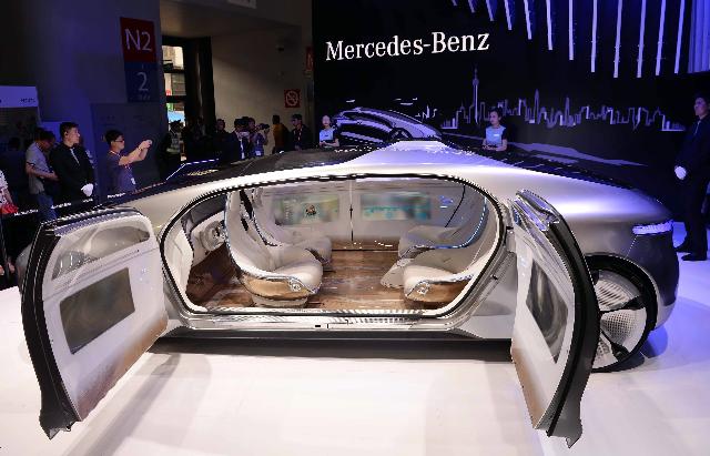 A driverless car from Mercedes-Benz is seen on display during the first Consumer Electronics Show (CES) in Asia in Shanghai on May 26, 2015. (STR/AFP/Getty Images)
