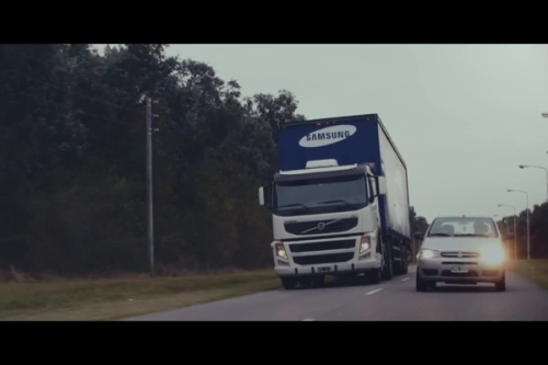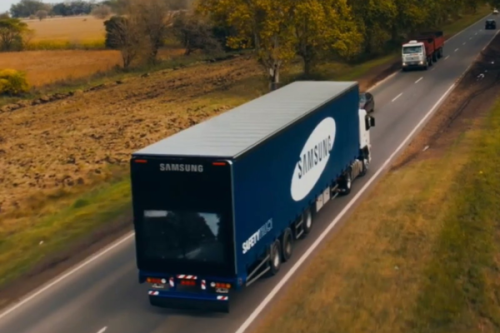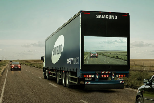 Samsung will mit dem Safety Truck Lastkraftwagen für den nachfolgenden Verkehr durchsichtig machen.