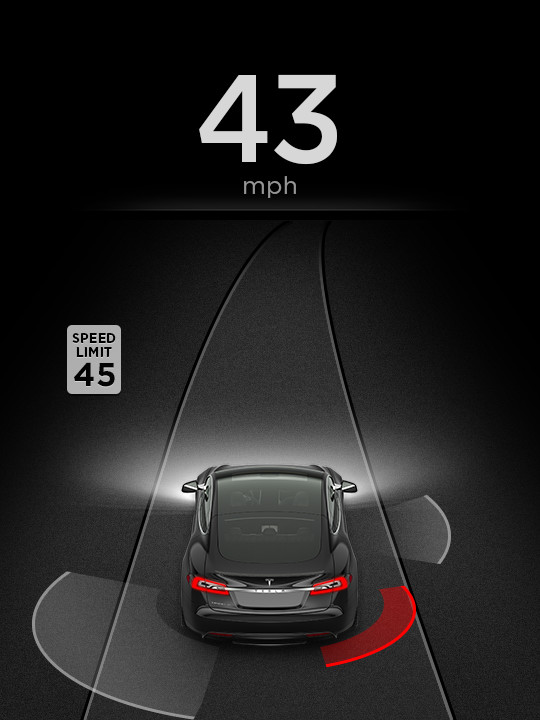 Today’s update increases the driver’s confidence behind the wheel with features to help the car avoid hazards and reduce the driver’s workload. While Model S can’t make traffic disappear, it can make it a lot easier, safer, and more pleasant to endure.