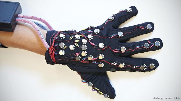 Bieling, a researcher at the Design Lab in Berlin, has developed a glove kitted out with fabric pressure-sensors. By translating a tactile hand touch alphabet into digital text, the mobile glove could eliminate the necessity of hand-to-hand physical contact for deaf-blind communication. Even better, because a great deal of online communication is text-based, the glove could act as a translating device that allows people who are deaf-blind to communicate freely with anyone – and for anyone to communicate with them.