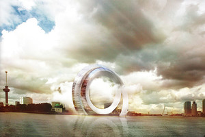 A team of Dutch companies has unveiled a proposal for a huge circular wind turbine that doubles as an apartment block and hotel, and also includes a rollercoaster. Billed as "the most innovative windmill in the world", the Dutch Windwheelis intended as a landmark attraction for Rotterdam's waterside. Architecture studio DoepelStrijkers designed the structure and is promoting it with the help of partners Meyster's and BLOC.