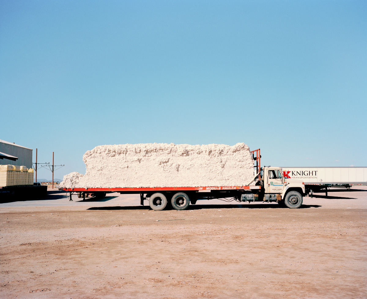 Today, Wuertz’s irrigated cotton plants grow to about 4 feet tall, and are planted in even rows, about 3 feet center to center, extending for miles across furrowed fields. Every August, the bolls — pregnant pods just smaller than a golf ball — burst open, allowing their white cellulosic fiber to spring outward from hearty, splayed leaves and a small seed. Modern tractors, called cotton pickers, drive a comb through the fields, plucking the drying bolls from their stems and shooting them through a mechanical snorkel into a large basket being towed behind. Another basket, or “boll buggy,” dumps the load into a compressor, which packs the cotton into a brick 8 feet tall and 32 feet long.