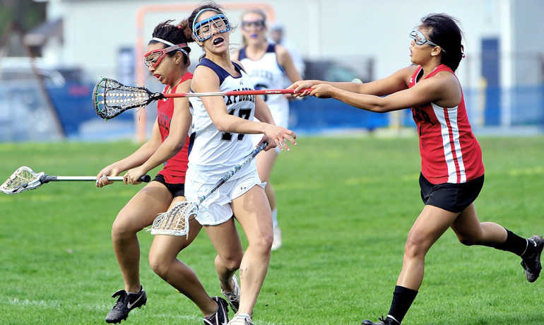 In many girls' lacrosse game situations, given how little other protective equipment female players wear, a hard-sided helmet could easily cause more injuries that it prevents, says Joseph Crisco. "It could actually make the game more aggressive." (Credit: K.M. Klemencic/Flickr)